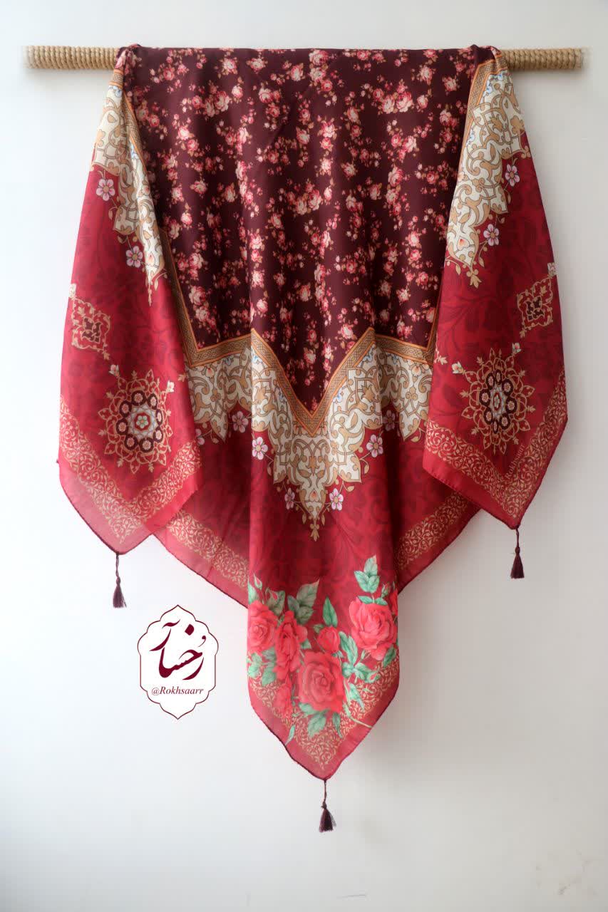 زرشکی تیره 🔸️جنس : نخی کیفیت خوب و خوش ایستا و لطیف 🔸️قواره : حدود ۹۰ الی ۱۰۰سانت 🔸️ دورچرخدوز بدون منگوله