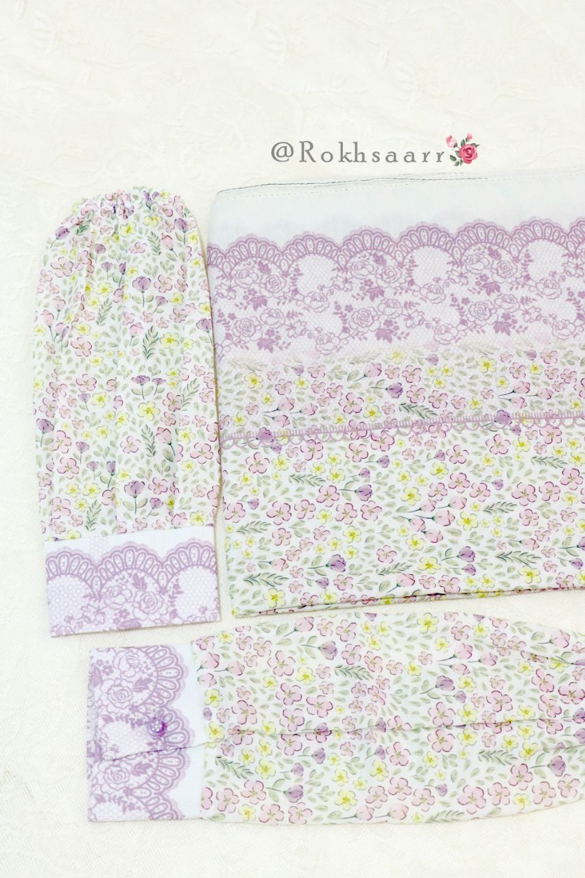 🔸️رنگبندی : رنگ زمینه حدودن سفید و گلها یاسی و زرد