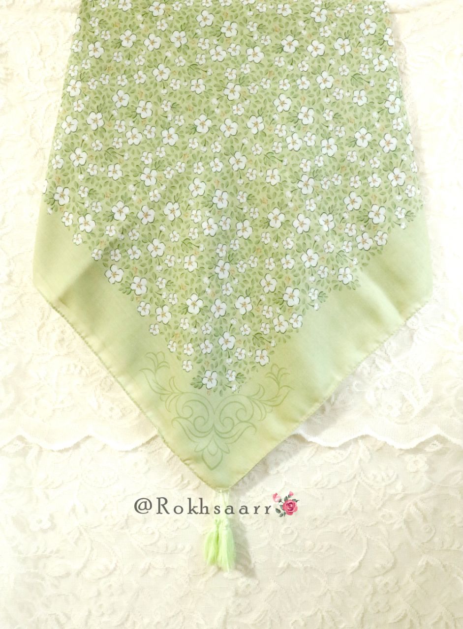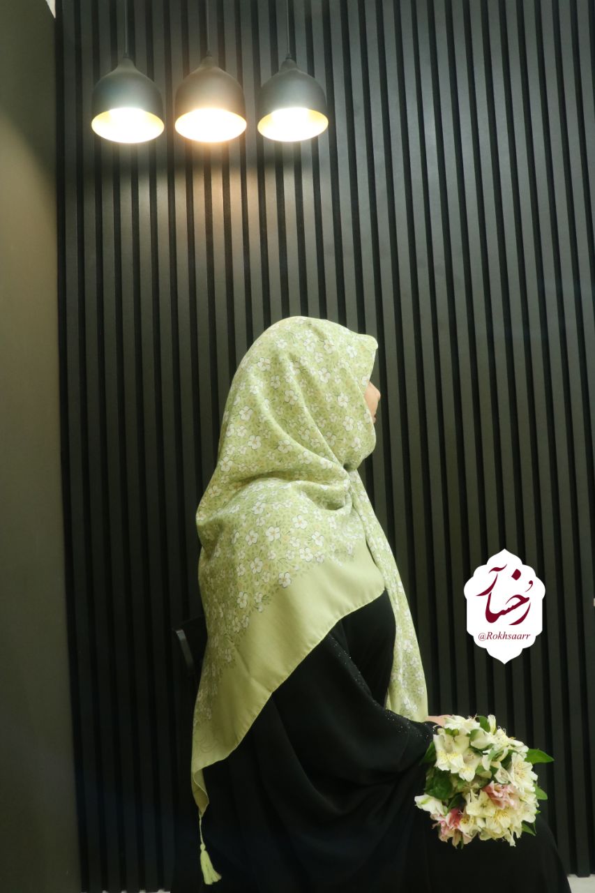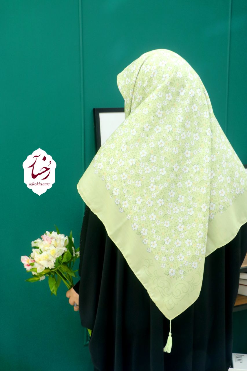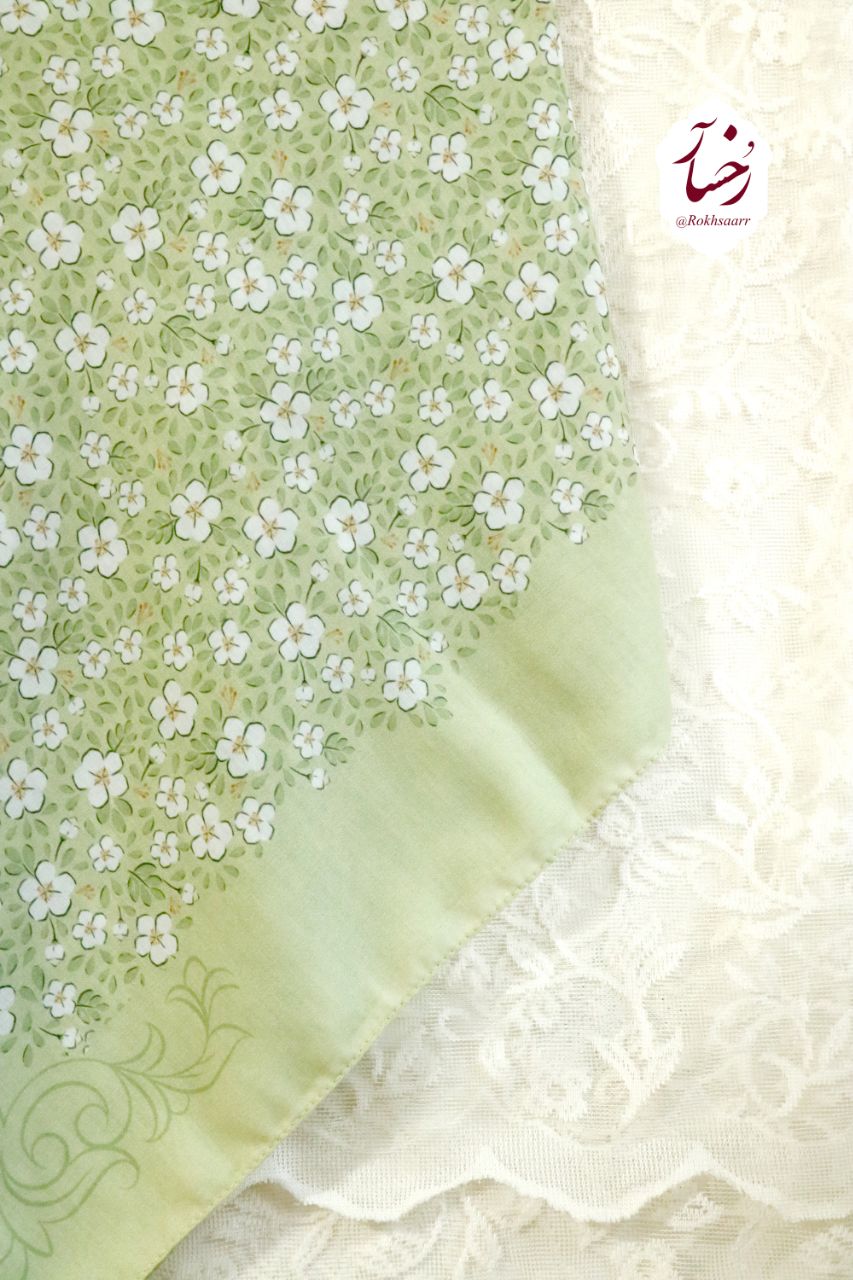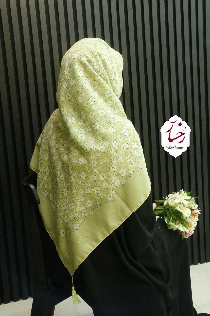 کالکشــــ۴۰۵ـــن بهآر رُخسآر 🪻🌱⚘️ 🌱⚜️ روسری چمـــــــن ⚜️🌱 🔸️جنس : نخی کیفیت خوب و خوش ایستا و لطیف اصلن سُر نیست و خنک . 🔸️قواره : حدود ۱۳۰ الی ۱۴۰ سانت 🔸️ دورچرخدوز منگوله دار 🔸 رنگ زمینه : سبز ماچا و ملایم .