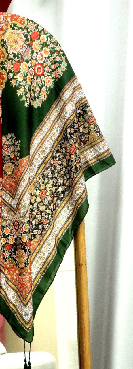 🔸️جنس : نخی کیفیت خوب و خوش ایستا و لطیف اصلن سُر نیست 🔸️قواره : حدود ۹۰ الی ۱۹۰سانت 🔸️ دورچرخدوز رنگ سبز سیر از ست سایز بزرگش پررنگتره